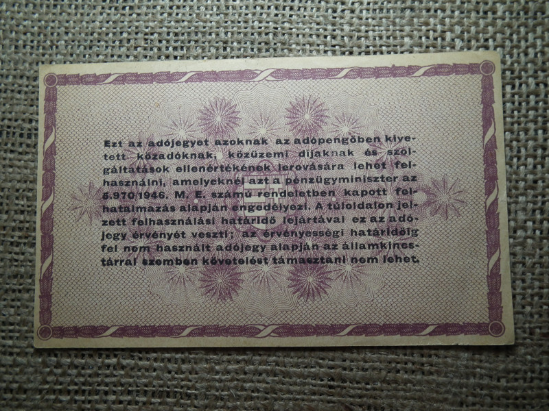 Százezer adópengő 1946 , vízjeles , sorszám nélkül !