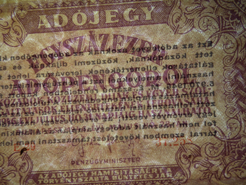 Százezer adópengő 1946 , vízjeles , sorszámos !