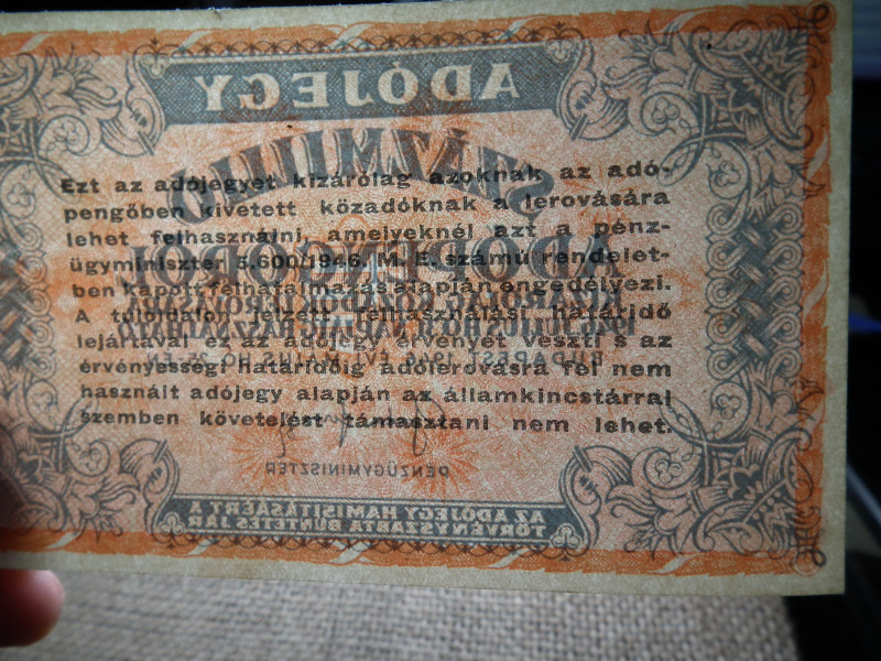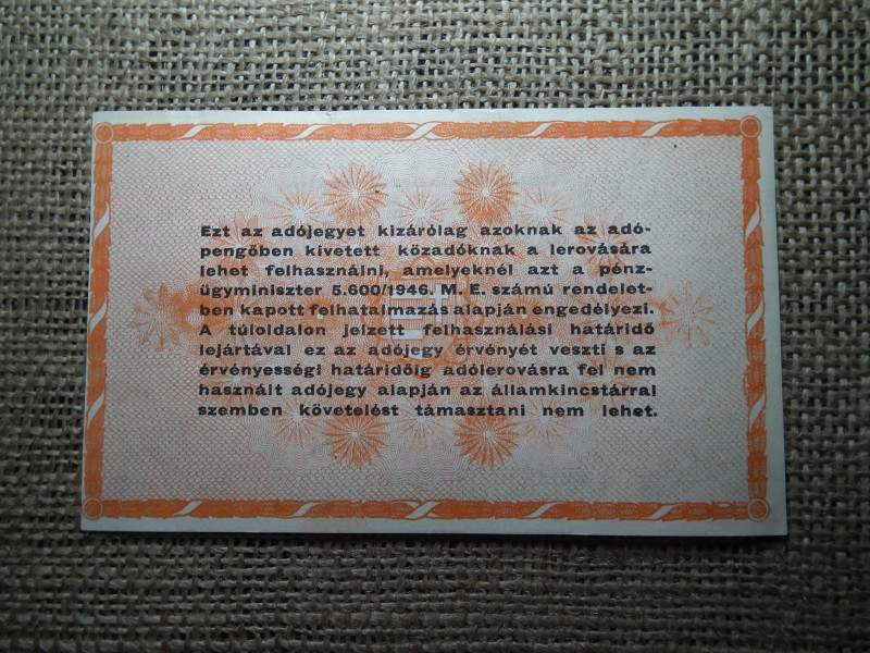 Százmillió adópengő 1946 , ef , gyönyörű , hajtatlan