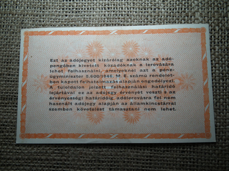 Százmillió adópengő 1946 , ef , gyönyörű , hajtatlan