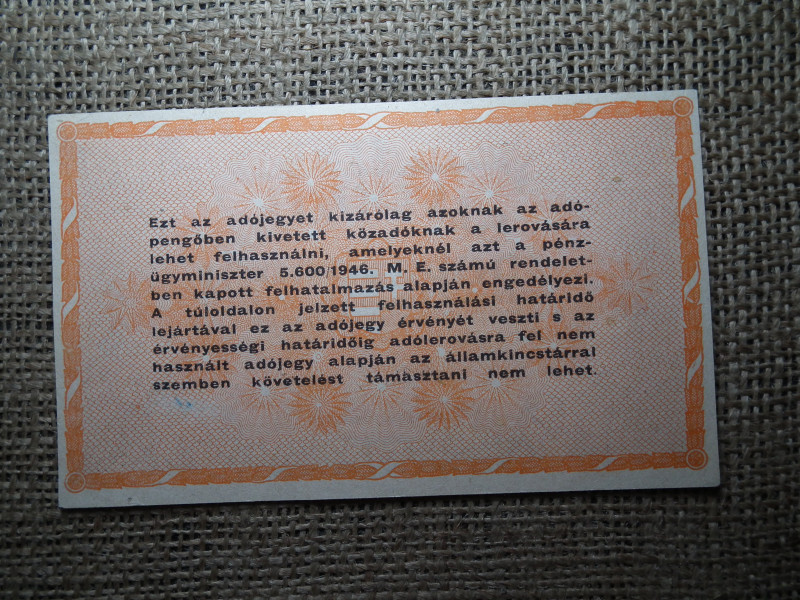 Százmillió Adópengő 1946 , ritka , hajtatlan