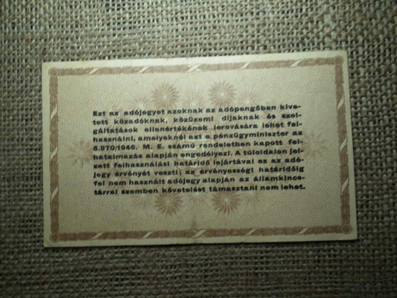 Tízezer Adópengő 1946 , 5 számjegyű sorszám , vízjeles