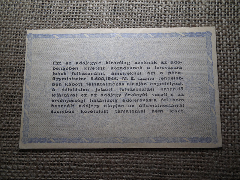 Tízmillió Adópengő 1946 , fordított címer , vízjeles