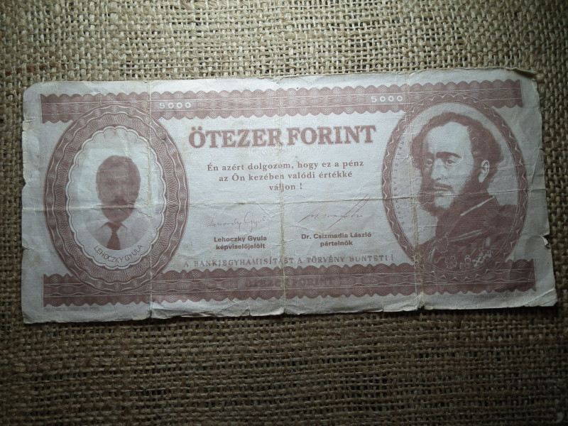 5000 forint 1994 május 8. Lehoczky Gyula , Propaganda bankjegy ! Ritka , Konzervatív párt
