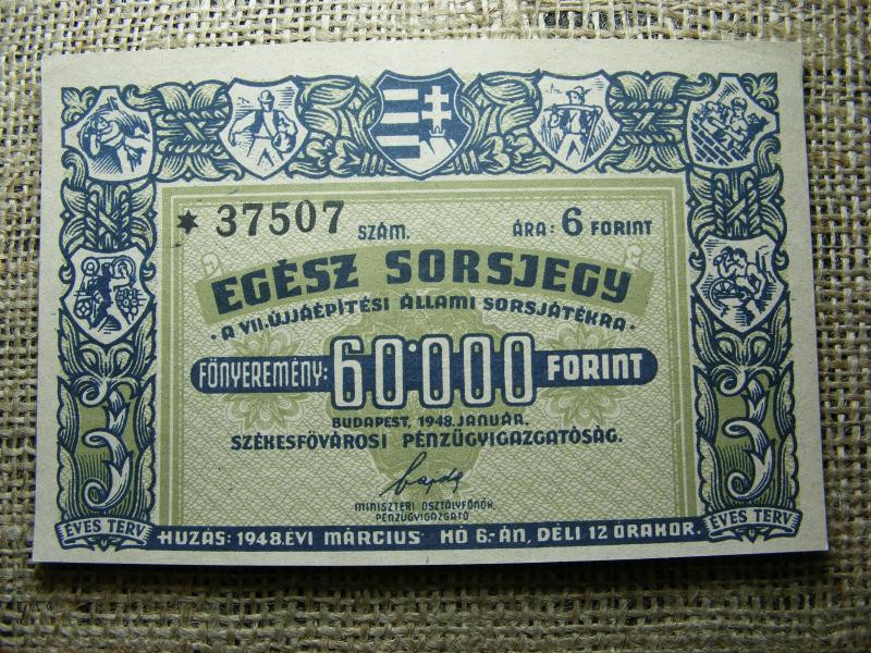 6 forintos szükségpénz, 1948, egész sorsjegy