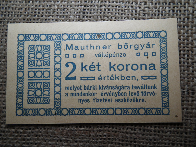 Mauthner bőrgyár váltópénze 2 korona 1919