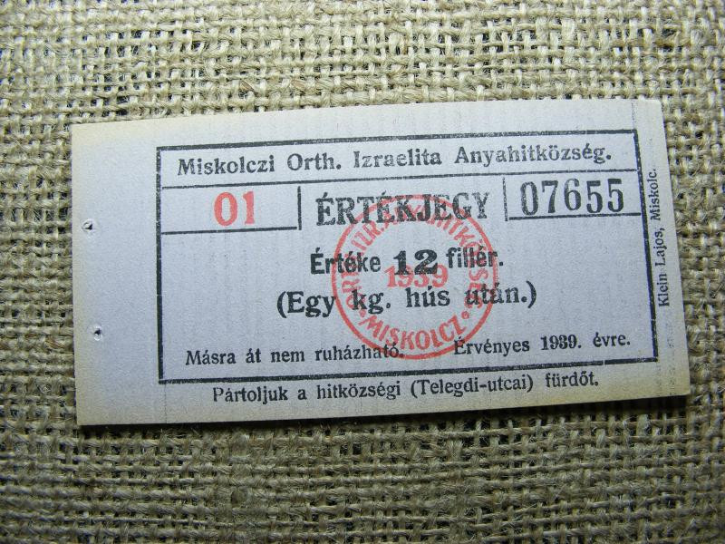 Miskolci Izraelita Hitközség Bárca papírpénz, 1944