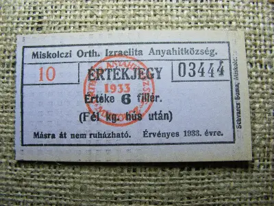 A Miskolci Ortodox Izraelita Hitközség által kibocsátott 12 filléres értékjegy 1931-ben nyomtatták, és két darab, sorszámkövető példányban került forgalomba. Ez a szükségpénz a történelmi Miskolc zsid... tovább