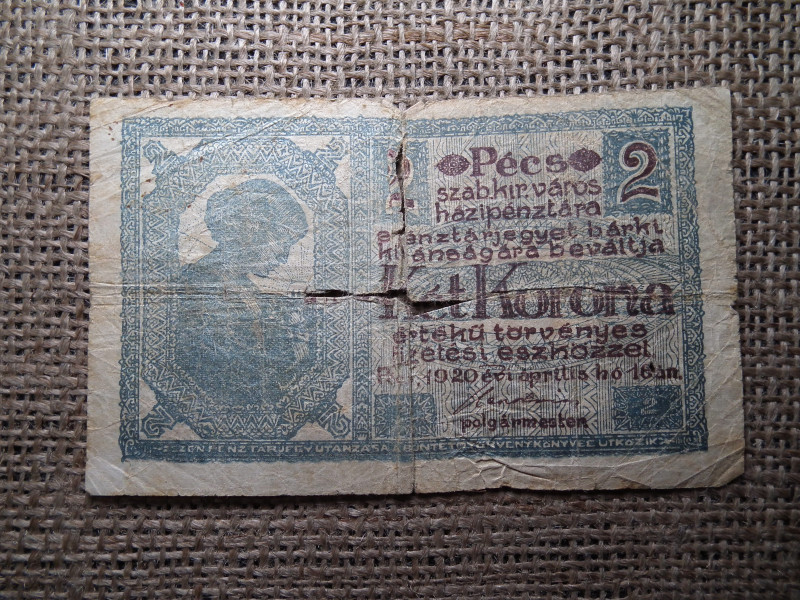 Pécs Szabad Királyi Város Házipénztára 2 Korona 1920
