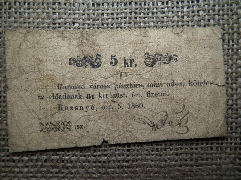 Rozsnyó 5 Krajcár, 1860, szükségpénz